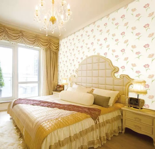 卧室需要给人温馨的感觉,使人放松情绪,甚至可以带点催眠效果,亮度较低,颜色稍微深一点的墙纸比较适合。当然,如果是在很喜欢亮色的墙纸,醒着的时候喜欢活泼的卧室。睡觉时又喜欢宁静的感觉,怎么办呢?那就加上厚一点的窗帘,一拉一开,立马改变房间色调。